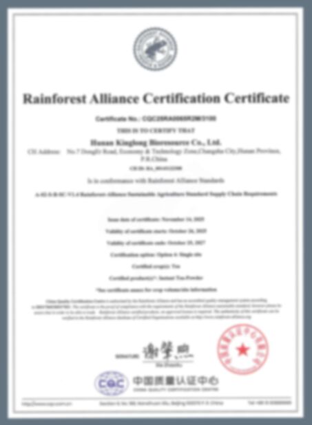 | Standart: | Rainforest Alliance Certification Certificate |