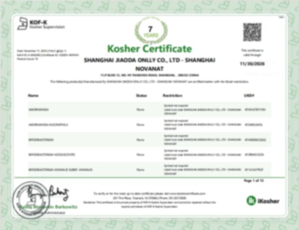 Novanat'ın yıllık üretim kapasitesi 1200 tondan fazladır ve yaklaşık 400 çeşit bitki ekstresi ve 30 çeşit probiyotik tozu üretmektedir.Yüksek kaliteli ürünler sağladık., sertifikalı kalite sistemi (ISO9001, ISO22000, FSSC22000 ve cGMP) tarafından kontrol edilir ve dünyanın birçok ülkesi için KOSHER ve HALAL tarafından sertifikalandırılır.Bitki ekstreleri işlemiyle ilgili kendi sahip olduğumuz yetkili patentlerimiz, probiyotik suşları ve ürünleri, ürünlerin üretilmesi ve satılması için temel oluşturur.